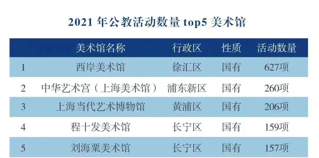 在最近公布的上海2021年度公教活动top5美术馆排名中,西岸美术馆以627场活动名列全市第一,美术馆已经从单纯的展示空间成为亲子家庭体验艺术与自然,启发互动探索的一个好去处。