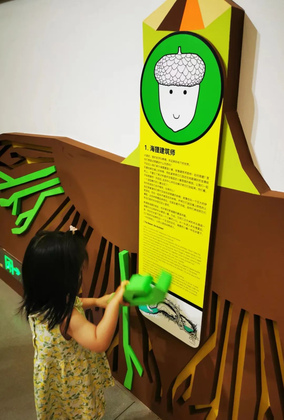 8岁的阳阳和母亲张女士特地从浦东赶来,展区里八大生态区域和十多种探索游戏激发着孩子的好奇心。“这里有各种植物的根,有蚂蚁洞、老鼠洞、鼹鼠窝,那里有地下水、地下溶洞,还有蚯蚓,再地底下就是热的地核岩浆了。”开学升三年级的阳阳之前已经看了一些相关的科普书籍,艺术装置展中的模拟场景让她觉得既新奇又意犹未尽。