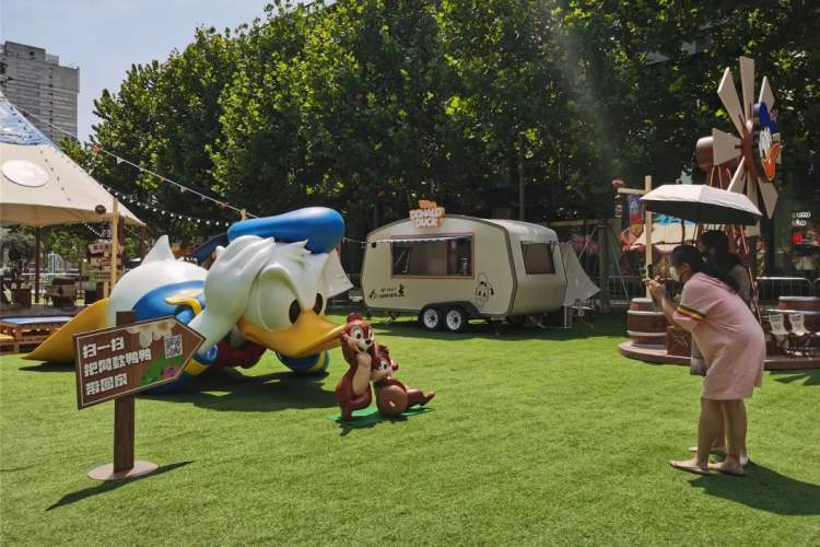 长宁来福士的“迪士尼唐老鸭主题夏日限定露营地”也开门迎客咯~营地充分利用了大草坪和户外空间陈设,市民可以参与“都市露营”趣味互动游戏,或在商场东区“疯狂扭蛋机”“唐老鸭大头贴机”等点位打卡冰在特制地图上盖章,集齐3枚即可兑换迪士尼合作版的纪念品,包括定制露营主题箱、唐老鸭徽章、贴纸、扇子等等。