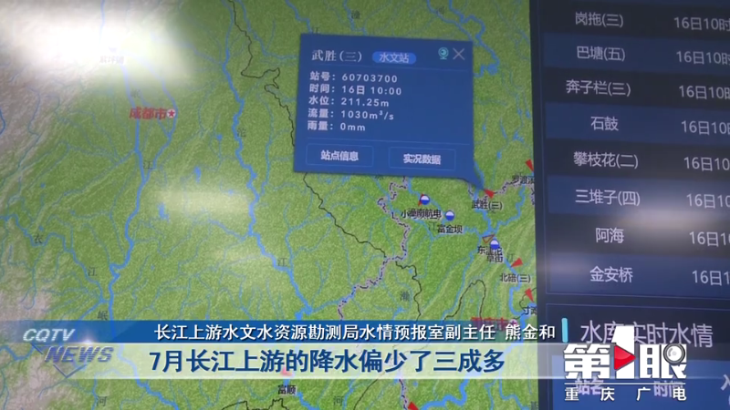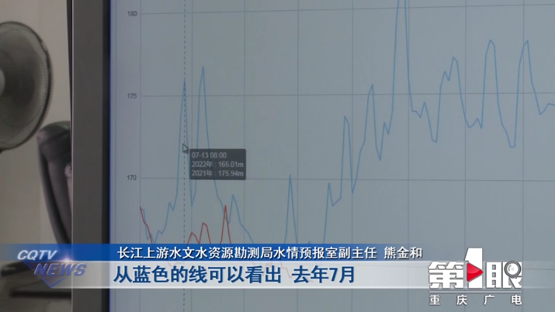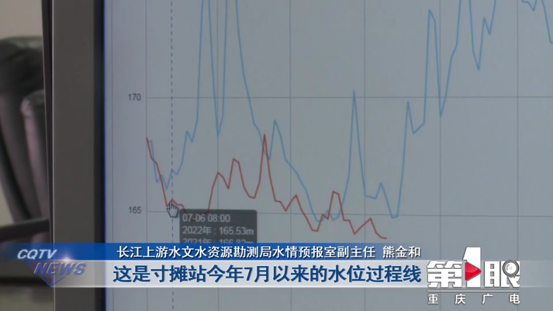 眼前的景象,让住在江边的市民,都直呼少见。那么,真如网友所说,嘉陵江是被晒干的吗?记者采访了长江上游水文水资源勘测局的水文专家。根据实时的水情数据,长江寸滩站和嘉陵江北碚站,今年水位比去年同期要低3米左右,接近历史同期最低。本来7、8月份是重庆的主汛期,但是今年的情况非常特殊,进入主汛期后,水位反而持续退落。最主要的原因就是长江及嘉陵江上游降雨明显偏少,上游来水减少。