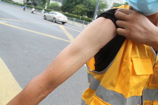 经历长时间户外作业后,他的胳膊出现了色差,捋起袖子一看,果然黑白分明。