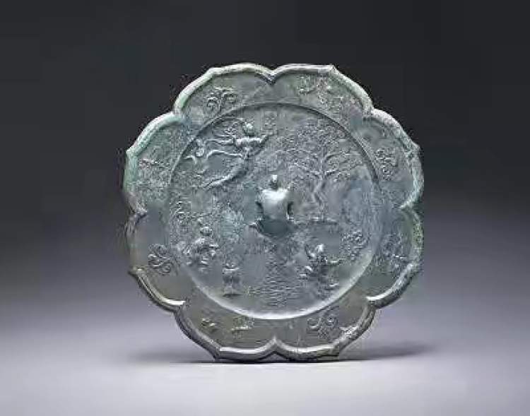 其中,唐代嫦娥玉兔菱花镜,镜为八瓣菱花形,伏兽钮。铜镜背面是一幅月宫图。整个纹饰突出了月宫的主题,且构图新颖。