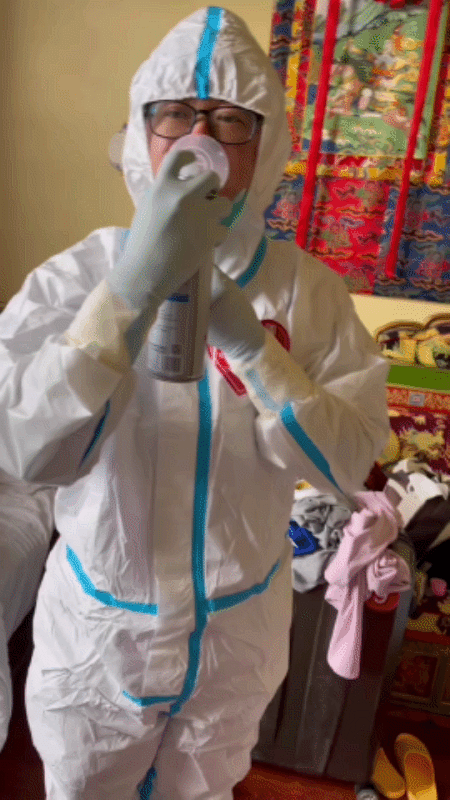 很快,队员们穿戴好防护服出发,奔赴不同点位开展采样工作。防护服之下,尽可能少说话、少走动,保证好的采样状态,大家凭着毅力坚持着。经过两个多小时不间断的工作,当天队员们顺利完成了1960多人次的采样量。“褪去防护服,队员们抱着小氧气瓶喘着粗气,却没有一个人喊苦喊累。返程路上,大家还有说有笑,开心得像一群孩子。”