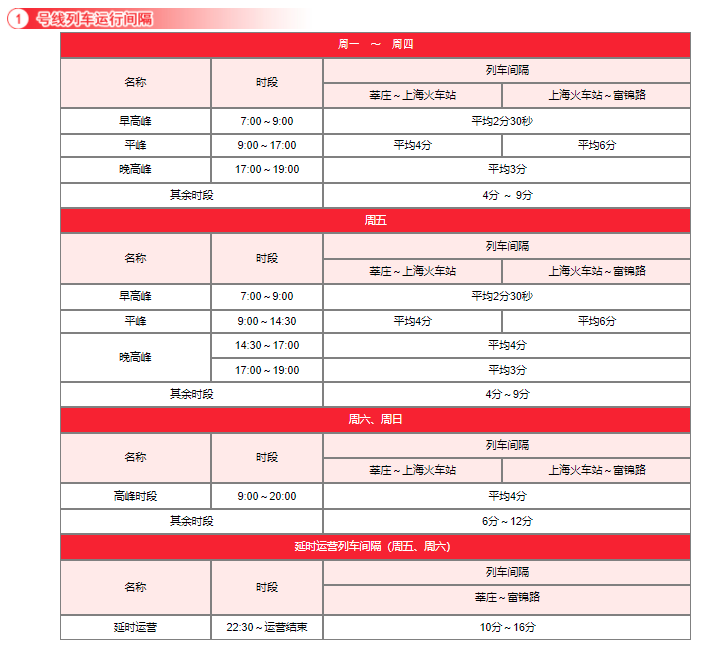 1. 1号线每周五、周六延长运营时间。
