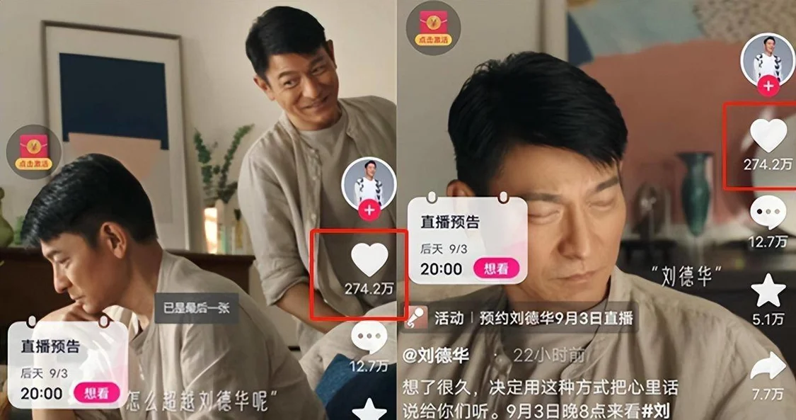 此前8月31日,天王刘德华官宣自己9月3日将会在抖音开启直播。直播的消息发布后的几个小时,视频点赞量便迅速突破100万,得到上百万网友支持响应。网友们纷纷在评论区诉说自己对华仔的喜爱以及对直播的期待,不少网友感叹,终于等到华仔的直播了。