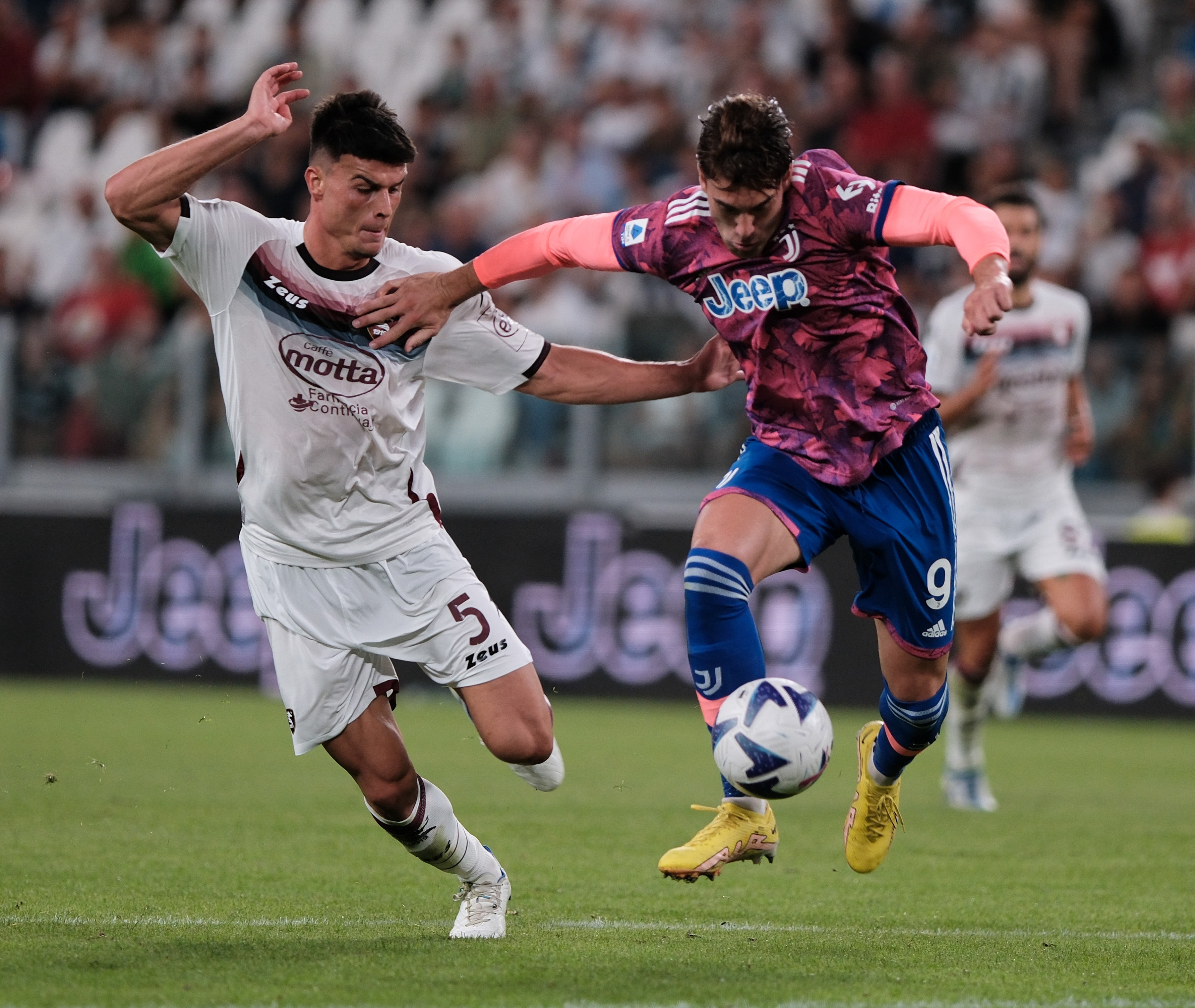 9月11日,尤文图斯队球员弗拉霍维奇(右)与萨勒尼塔纳队球员达尼柳克在比赛中拼抢。新华社发(费德里科·塔尔迪托摄)