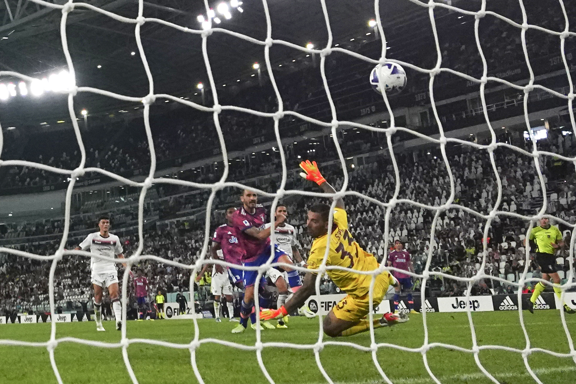 9月11日,尤文图斯队球员博努奇(中)在比赛中破门。新华社发(费德里科·塔尔迪托摄)