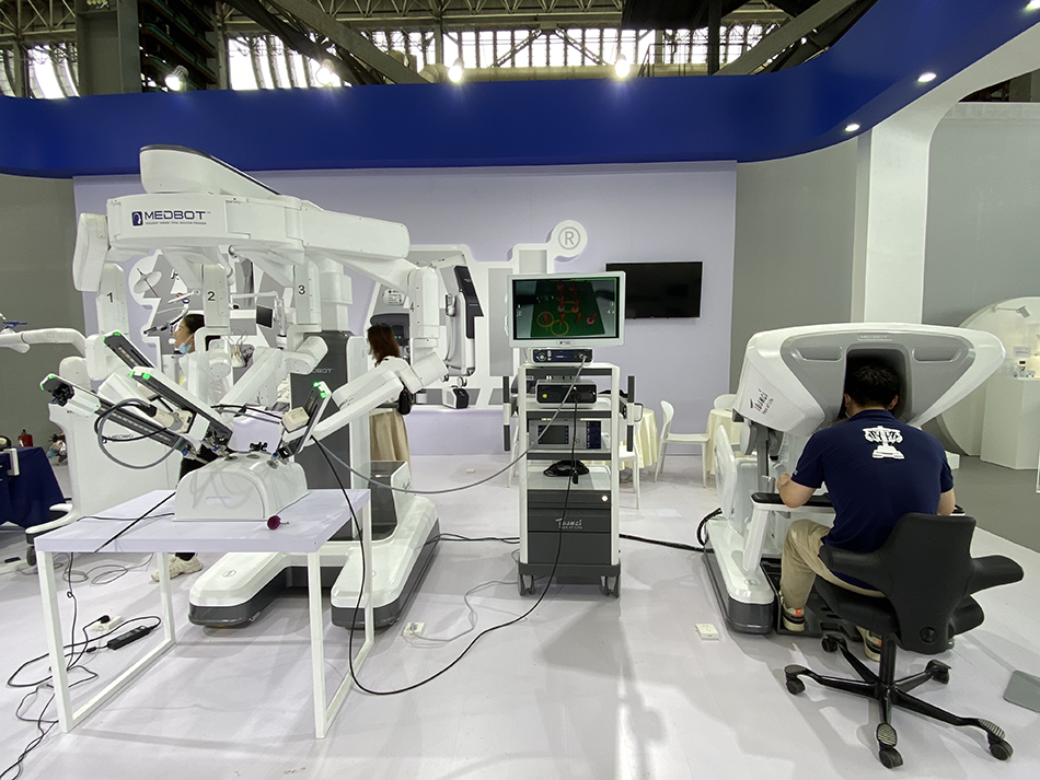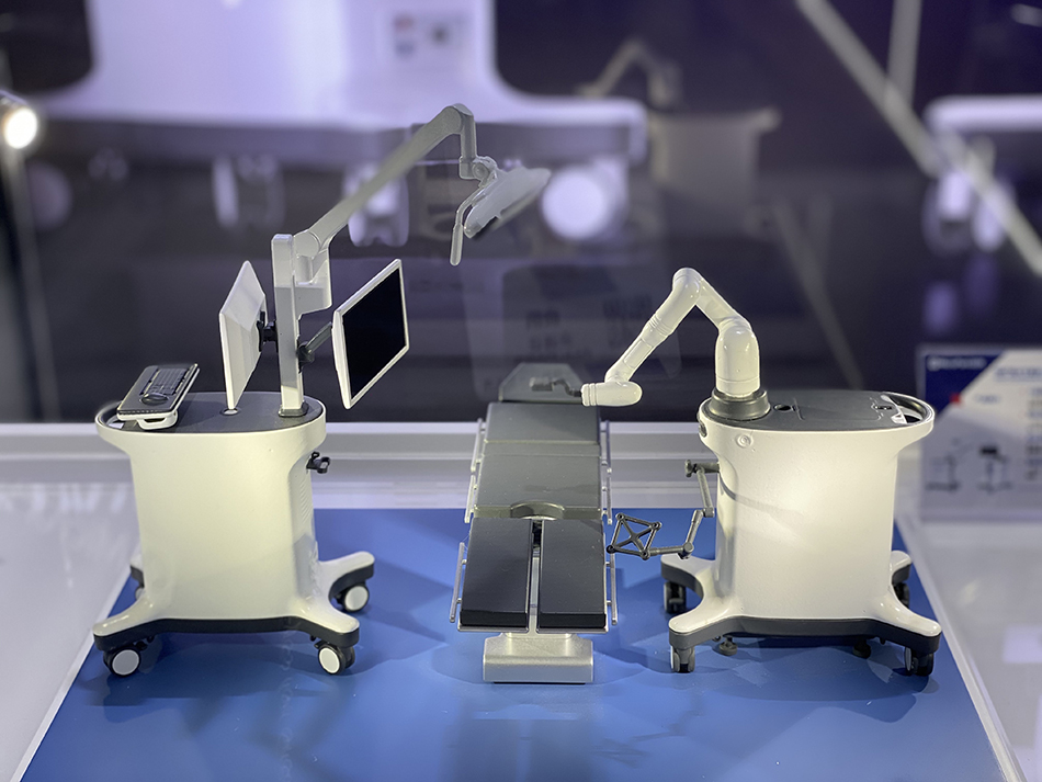 世界设计之都大会中国船舶馆主展场微创展区展示的图迈腔镜手术机器人