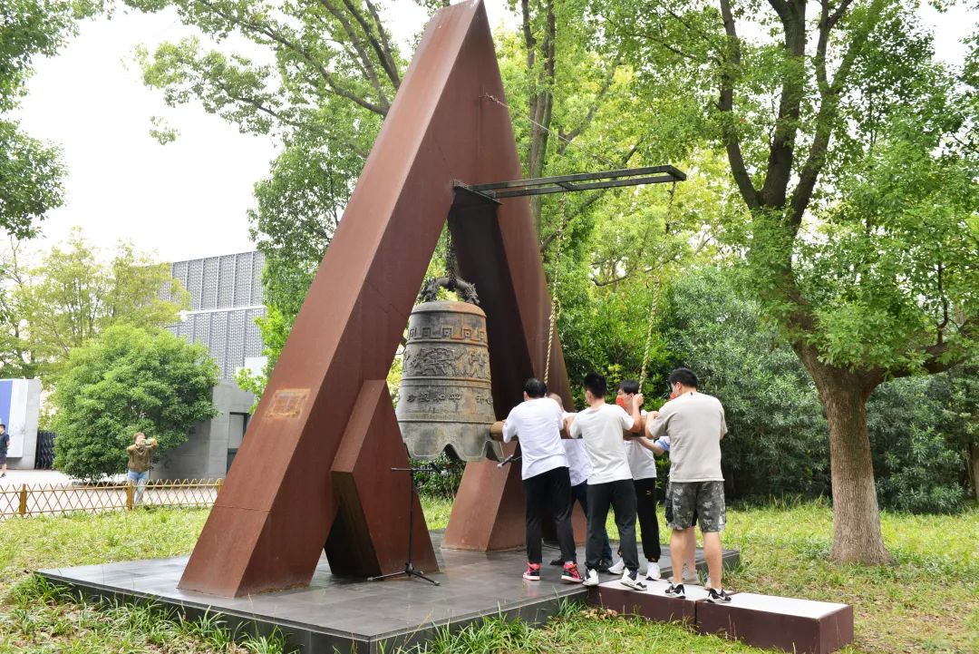 上午9时18分,伴随着雄壮的国歌声,纪念仪式开始,参加仪式的各界代表共同撞响“警世钟”,14响钟声响彻宝山上空,代表着中华民族14年抗战的艰苦历程,提醒我们铭记历史,勿忘国耻。