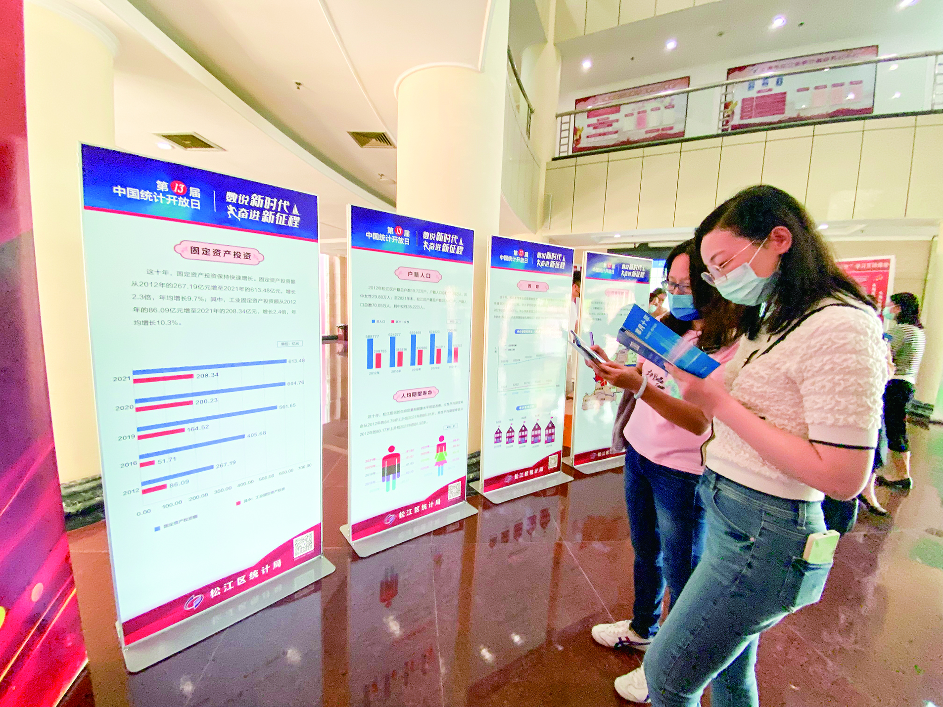 2012年至2021年,松江地区生产总值从886.55亿元增至1782.28亿元,地方财政收入从88.26亿元增至250.10亿元……昨天,松江区统计局举办第十三届“中国统计开放日”活动,一组组展示党的十八大以来松江经济社会发展成就的数据令人振奋。