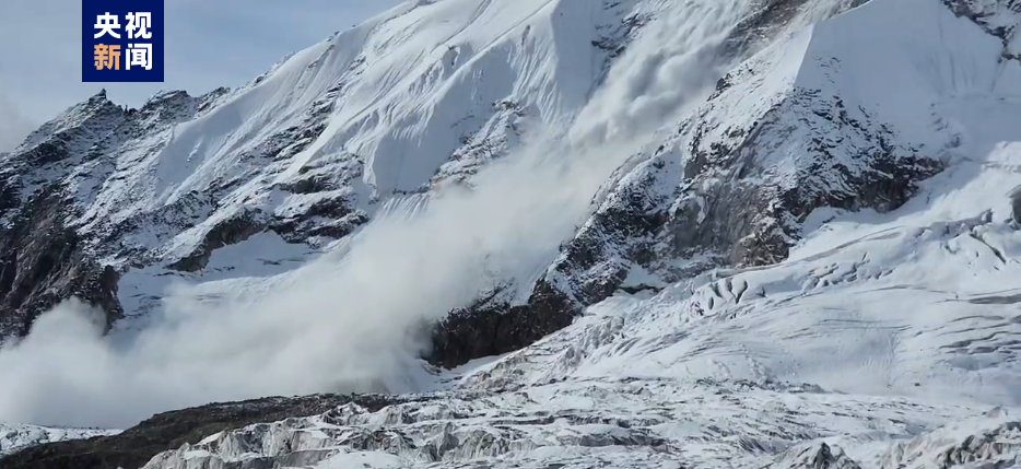 总台报道员23日拍摄到的马纳斯鲁峰一场规模较小的雪崩
