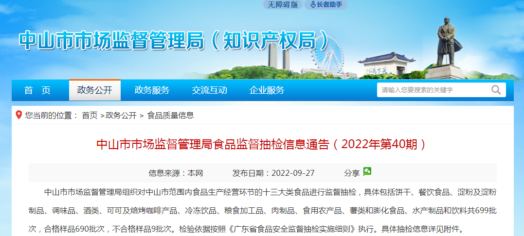 中国质量新闻网讯 9月27日,广东省中山市市场监管局网站发布2022年第40期食品监督抽检通告,涉及26批次冷冻饮品监督抽检合格信息。