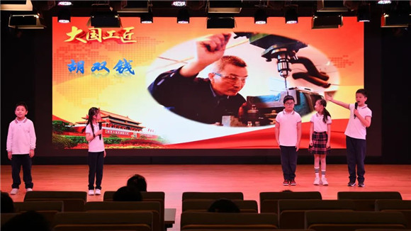 二、三、五年级的代表分享了三则大国工匠的故事:“从事火箭发动机焊接的高凤林”“刀尖上的舞者——徐立平”“加工飞机零件的胡双钱”,正是他们精益求精、坚持不懈的精神让大国重器世人惊艳。