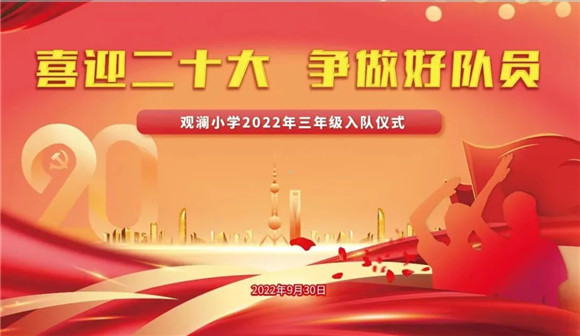 为更好地贯彻落实《关于构建阶梯式成长激励体系,增强少先队员光荣的指导意见》精神,切实增强少先队员光荣感和组织归属感,全面推进分批入队工作,2022年9月30日,观澜小学2022年少先队入队仪式在操场庄严举行,奏响了“人生三部曲”的第一篇章。
