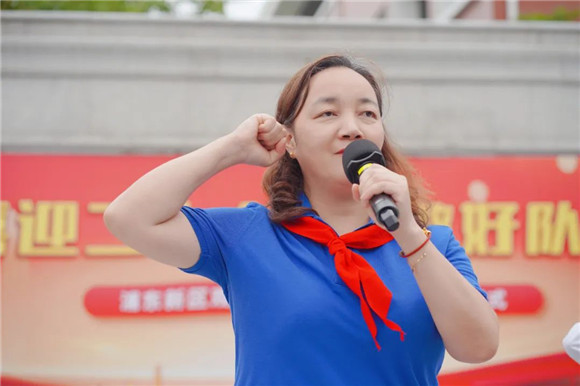 学校少工委主任,校长、书记金维萍热情致辞,寄语全体新队员能在星星火炬的引领下,乘风破浪,以自己的实际行动为胸前的红领巾增光添彩!