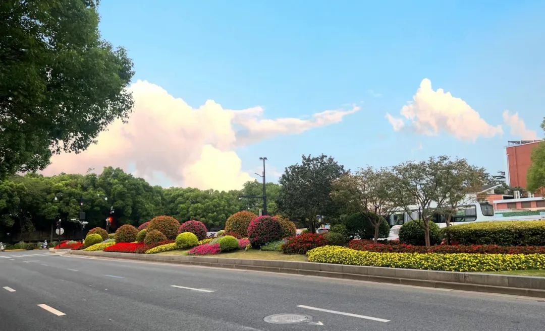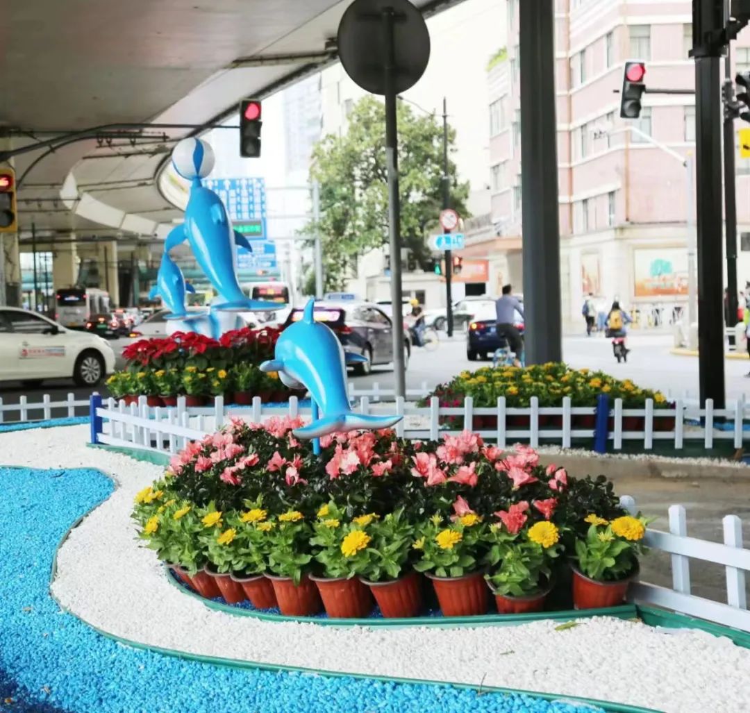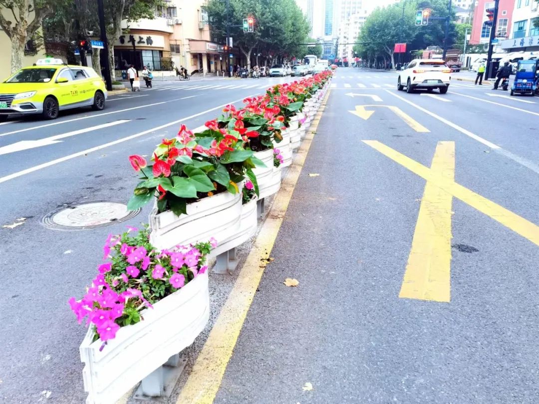 迎风飘扬的红旗,姹紫嫣红的鲜花…长宁街头喜庆美丽,各主干道、大型公共场所等,纷纷装扮一新,处处洋溢着喜庆、欢快的节日氛围。
