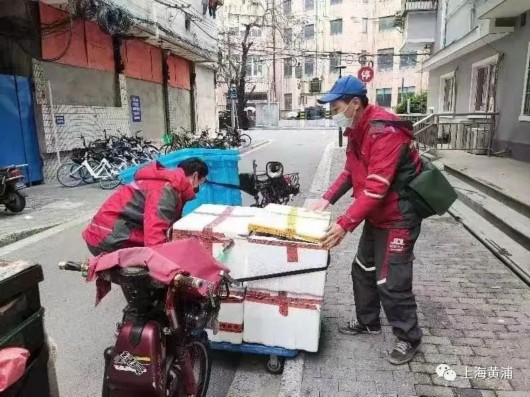 正当刘大军一筹莫展的时候,居委干部马上想到了社区党建成员单位——上海公益物业管理有限公司,并找来了物业经理邓林商量。在得知京东的困难后,邓林主动表示在乔家路8号中检大厦的停车场内,可以提供给京东物流几个停车位作为临时卸货点,这几个小小的停车位,解决了京东的大难题。
