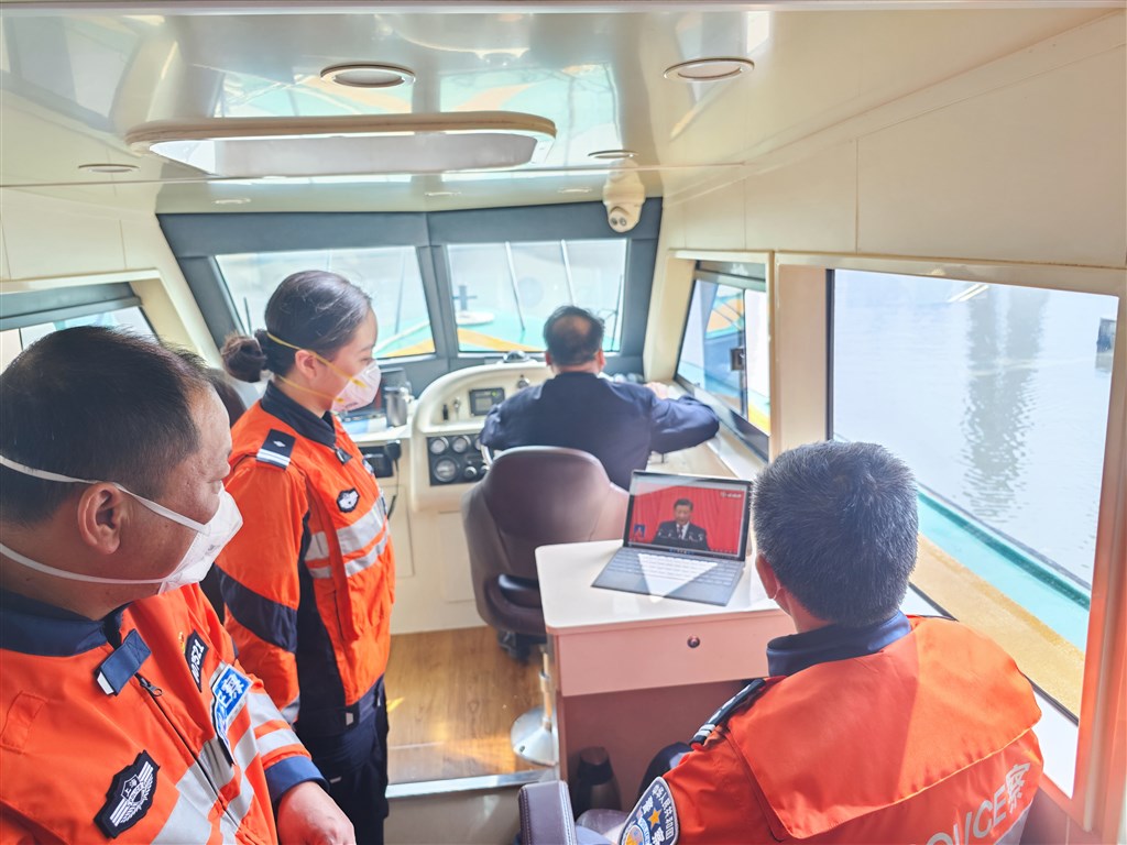 与此同时,在苏州河畔外白渡桥附近水域,刚看完党的二十大实况直播的上海边防港航公安苏州河水上派出所副所长冯逸璇也与同事一起,继续前往苏州河的上下游巡航。