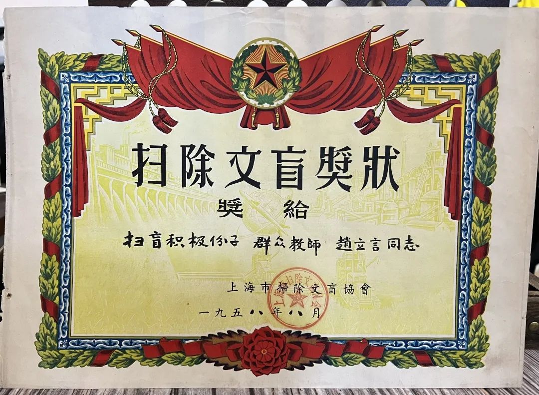 上世纪50年代,新中国刚刚成立,百废待兴,拥有初中学历的人在当时算是文化人,“我父亲后来担任过校长、文化馆馆长等职务,一生都在和文字打交道。”赵先生介绍,“我父亲也是我母亲的识字老师,这张识字证书就是父亲给母亲颁发的。”