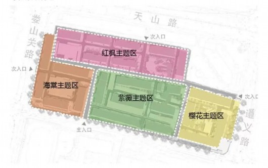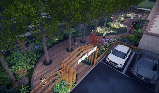 “大树离房子近,低楼层都晒不到太阳的。”“小区的绿化还是挺多的,但却没有特别有特色好看的景致。”……对于居民反映的绿化影响采光、分布不均、布局无亮点等问题,本次改造也提出了相应的提升方案。现状绿化较好的区域主要进行加强养护修剪,对小区围墙周边的乔木、灌木、藤本及草本植物进行梳理,采用绿篱+乔灌草组合形成围合绿化,并在居民区增加开花及色叶植物,形成绿化景观四大特色主题区,如红枫主题区、海棠主题区、紫薇主题区和樱花主题区,为社区增添更多色彩和亮眼绿化景观。