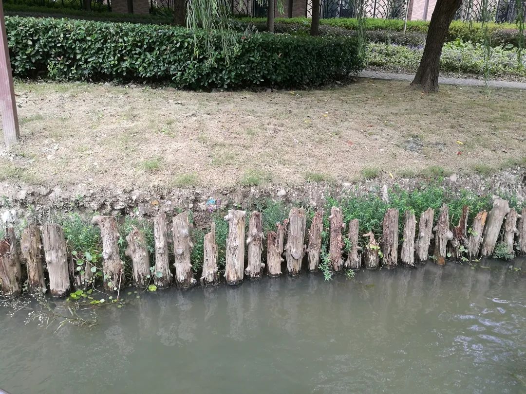 如尝试以“水”“绿”相促的生态养护模式,提高水体内部的营养消耗,改善水质;两岸采用圆木桩自然式驳岸,给绿化植物提供了合理的生长环境,并通过运用调整不同层级的植物特性,综合降低水体内的营养元素等。