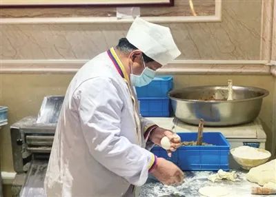 饭店负责人马旺林,是清真菜点制作技艺项目的上海市非遗代表性传承人。已近80岁的他,每天早上,都亲自到店调配秘制的肉馅、酱料等,并完成常规巡视。
