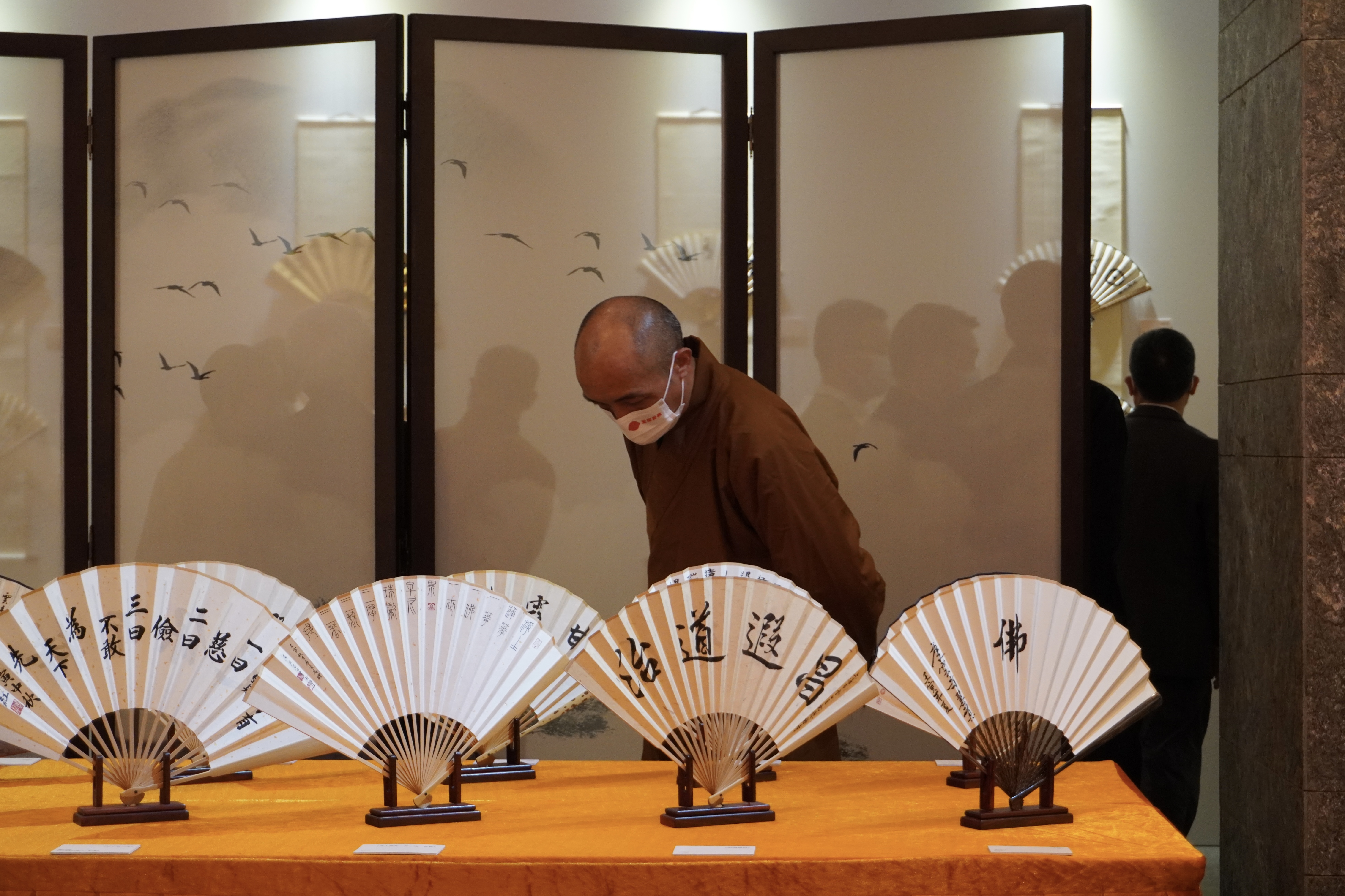 10月31日上午,上海市佛教协会“同心——上海佛教扇文化艺术展”在宁国禅寺开幕。