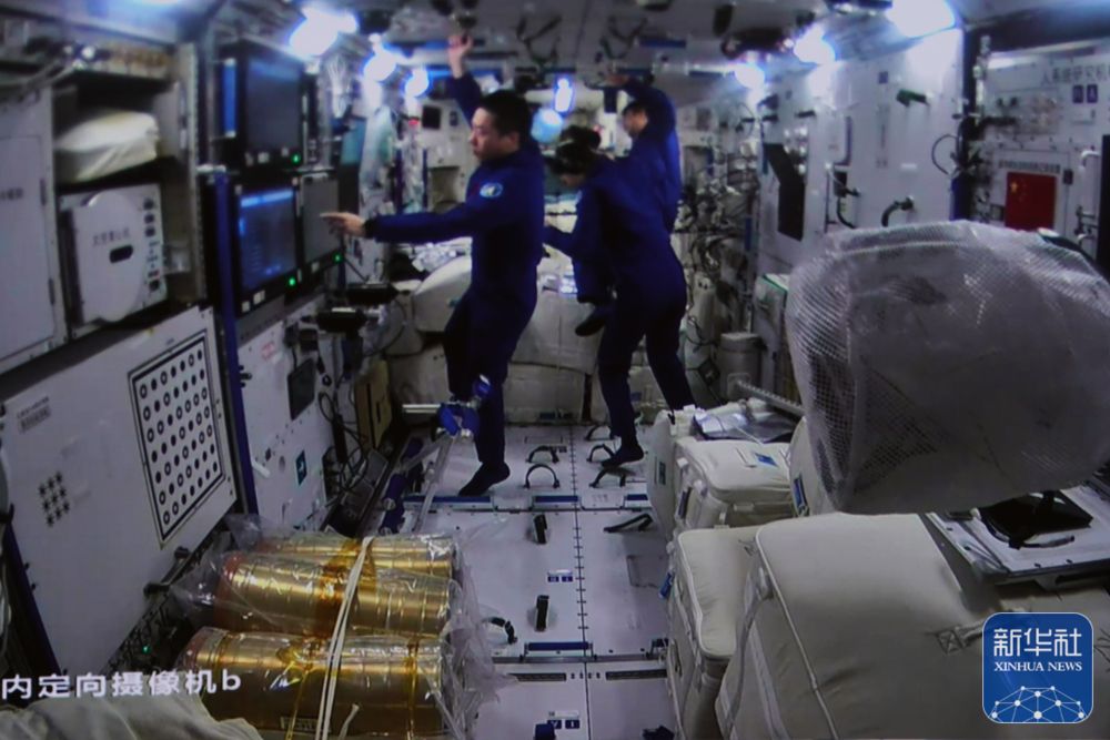 11月1日在北京航天飞行控制中心拍摄的空间站梦天实验舱与空间站组合体在轨完成交会对接。这是梦天实验舱成功对接于天和核心舱前向端口后,天和核心舱内的情况。新华社发(孙丰晓摄)