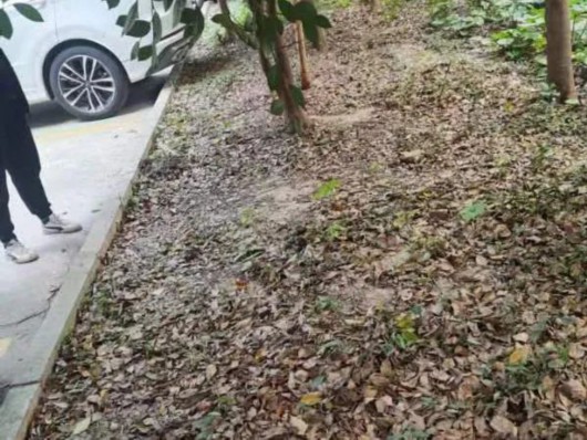 大家分工明确,分头行动,在小区各个角落同时进行补种。中心绿地补种麦冬,靠近路边处补种红叶石楠,防止居民随意进入踩踏绿化。