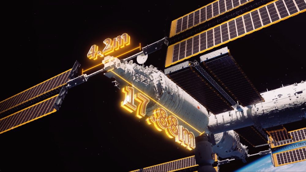 梦天实验舱由工作舱、载荷舱、货物气闸舱和资源舱组成,舱体全长17.88米,直径4.2米,起飞重量约23吨,可为航天员提供超过32立方米的工作与活动空间。