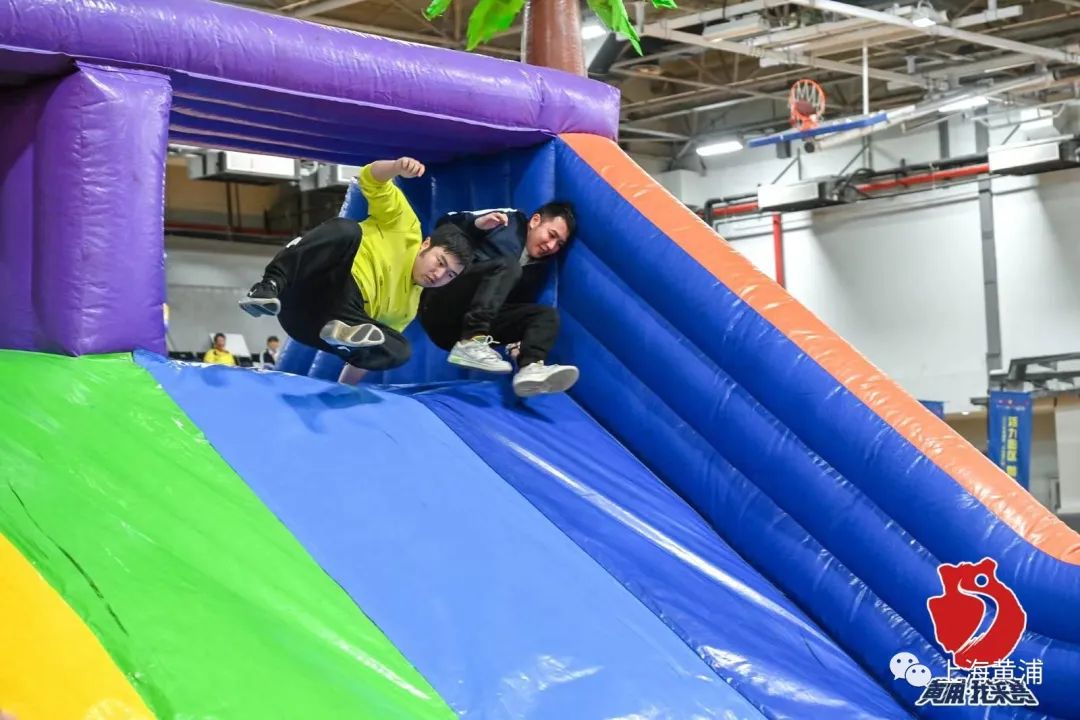 本次活动前三天分别在上海世博城市最佳实践区、江南智造·宏慧·盟智园和金地威新·8号桥展开了个人分站赛角逐。活动严格按防疫48小时内核酸阴性入场要求,设置的个人项目有陆地划船器、飞盘掷准、投壶掷准、投篮机、踢毽子,都比较容易上手,又颇具趣味性。活动期间每天中午,分站赛的场地都热闹非凡,当白领云集的园区邂逅活力四射的运动会,毫不相干的二者擦出了绚烂的火花,运动健儿们用佳绩向大家证明了他们不只是写字楼里的“好好先生”,更是运动场上的佼佼者。他们同场竞技,追逐梦想,展示了文创园区职工积极进取、敢为人先、永不言弃、勇于挑战的活力风采。