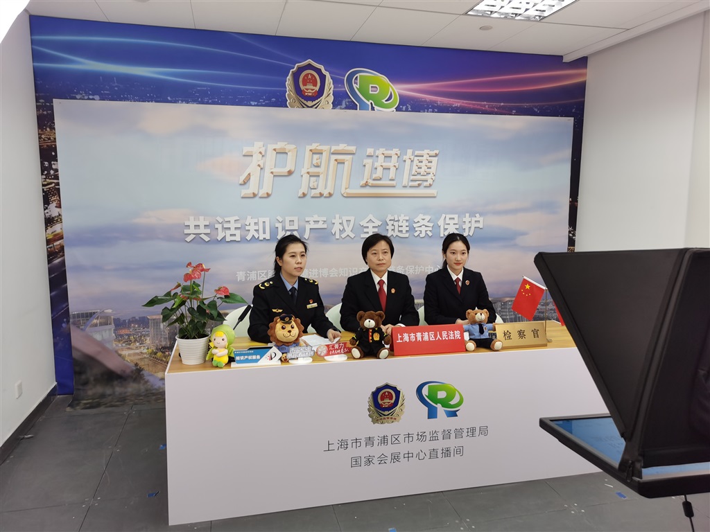 东方网11月8日消息:11月8日,上海市青浦区人民检察院、区人民法院、区市场监督管理局工作人员来到第五届进博会直播间,解读三方在打造“知识产权全链条保护”方面的创新举措,与屏幕前的观众共话知识产权保护。