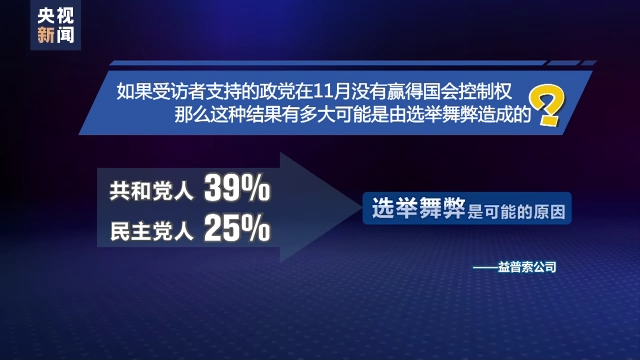 美国有线电视新闻网报道称,在本次中期选举日之前的一个多月,一份来自益普索公司的民调就显现出受访者对选举存在舞弊的怀疑态度。民调中的一个问题是,如果受访者支持的政党在11月没有赢得国会控制权,那么这种结果有多大可能是由选举舞弊造成的?