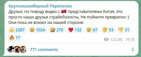 目前Alexei Nikolaevich的YouTube和电报频道中已无法找到网传视频,但是他11月13日晚发布电报称,“朋友们,关于与中国代表的视频,他们只是我们的朋友,是气枪玩家。不要误会我的意思,他们还没有站在我们这边战斗。”