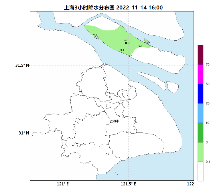 受冷空气影响,11月14日气温较昨日进一步下降,全天温差很小,白天气温在13度附近,相较前天同期26度的气温,打了足足“五折”,体感阴冷。下午崇明率先下起小雨,预计11月14日上半夜前阴有小雨。