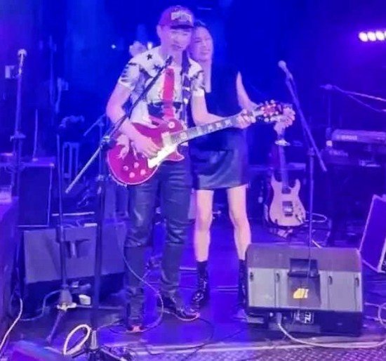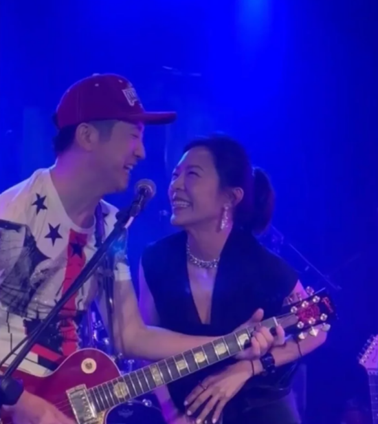 近日,庾澄庆和当年组成的“云霄飞车”乐团重聚演出,不少演艺圈好友到场支持。当庾澄庆唱到《情非得已》时,娇妻张嘉欣也一起上台与老公合唱。她扎着马尾辫,身穿黑色衣服端庄大方,与老公相视而笑,夫妇二人在舞台上公开放闪。