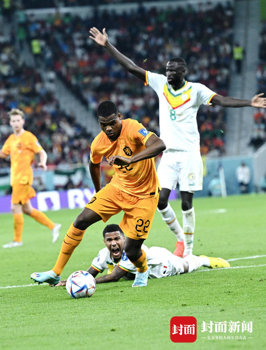 在11月21日举行的卡塔尔世界杯A组比赛中,“橙衣军团”荷兰队凭借80分钟后的两粒进球,战胜非洲杯冠军塞内加尔队,封面新闻记者现场直击。大力神杯模型亮相开场秀,精彩的烟火表演将气氛推向高潮。缺少主力马内的塞内加尔队虽然获得多次机会,但在最后关头城门失守,被荷兰队击败。