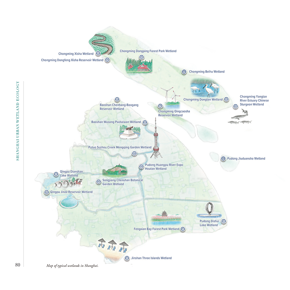 《上海城市湿地生态——自然与人文的交融》(英文版)封面及内页精选