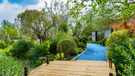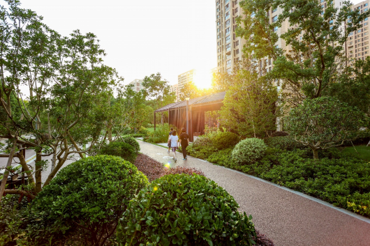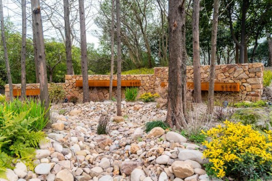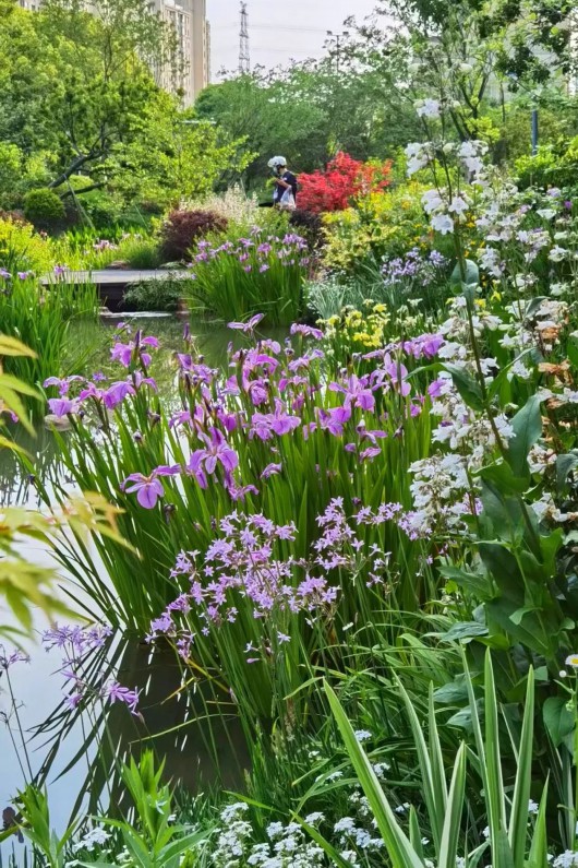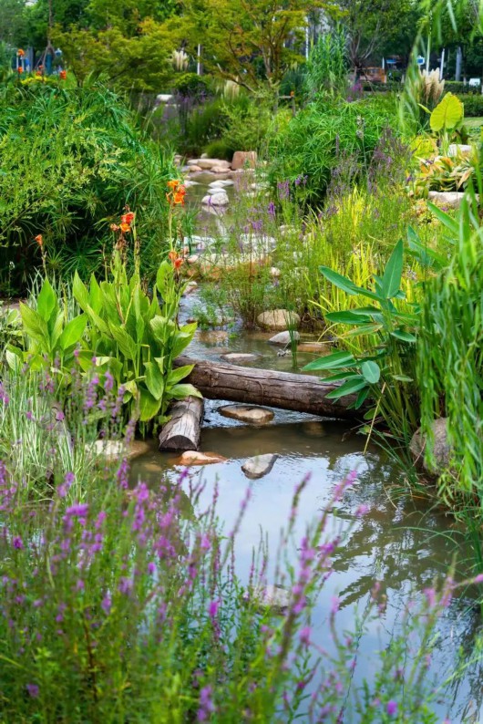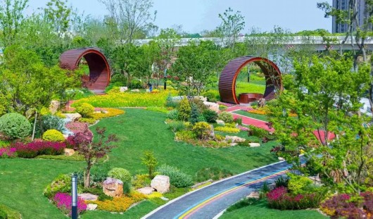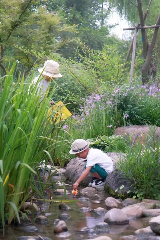 “明月松间照,清泉石上流”,犹如“锦绣花谷”的美谷公园,以石景雾森、雨水花园、生态材料、石笼花阶、芳香花园、观赏草园、童趣欢乐园等结合缤纷的灌木花草,蜿蜒绿道连通公园,增加了活力,满足周边居民生态、休闲、文化等多元需求。