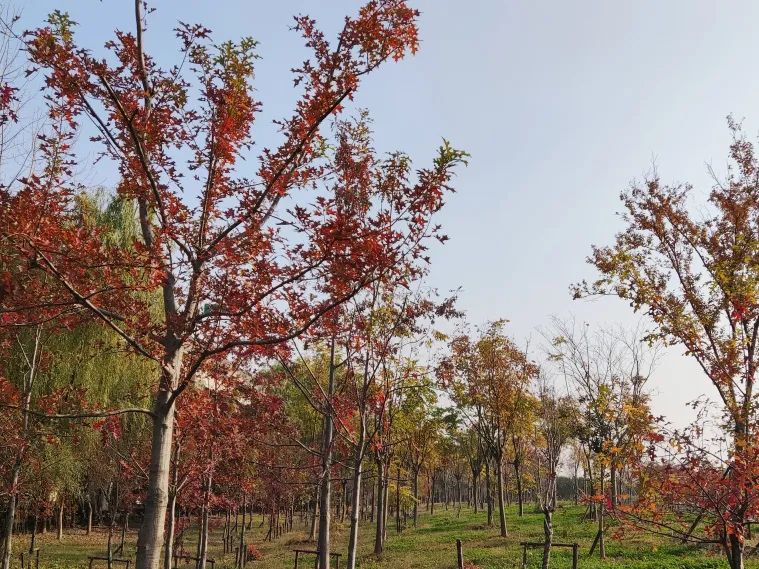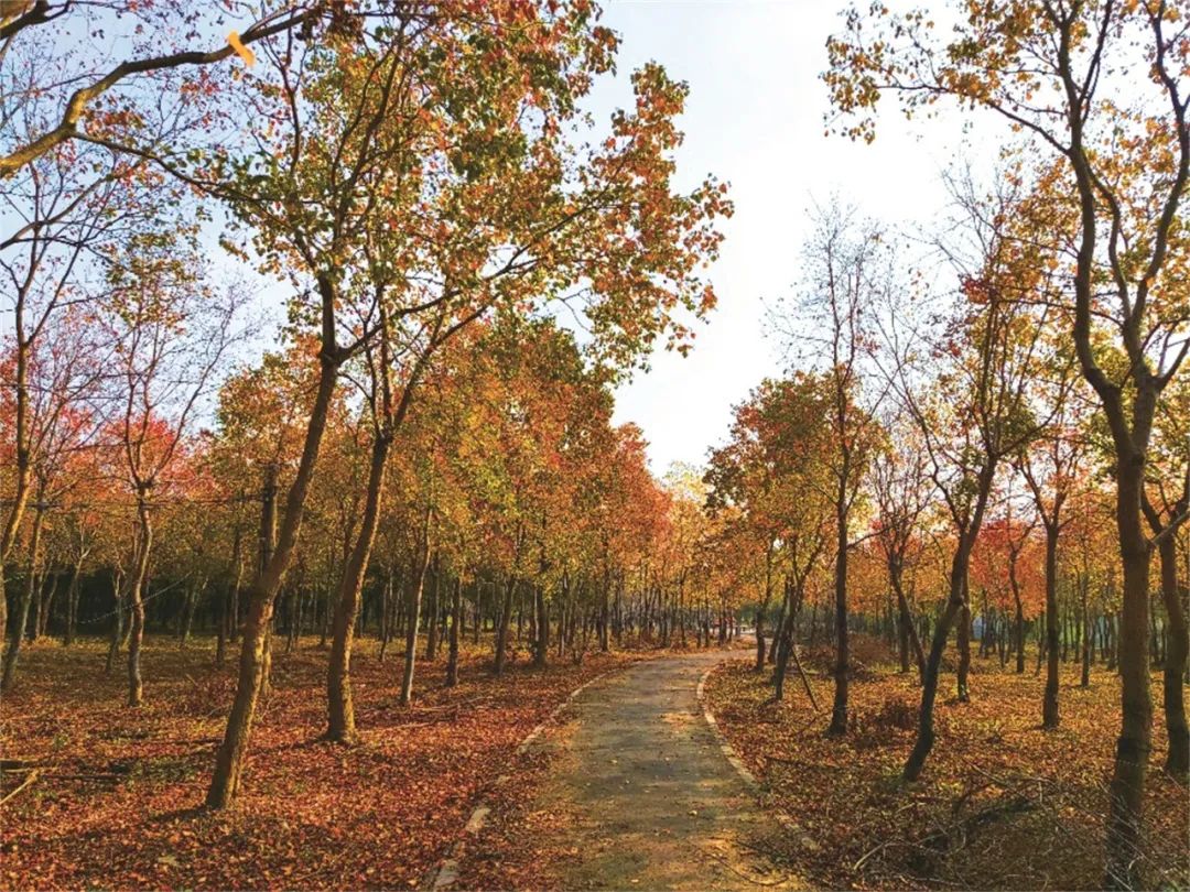 重固镇生态公益林四时皆有景,景景各不同。娜塔栎与榉树,在初冬时节显示出新的色彩,鲜红的树叶在阳光下熠熠生辉,真是树树皆美景。