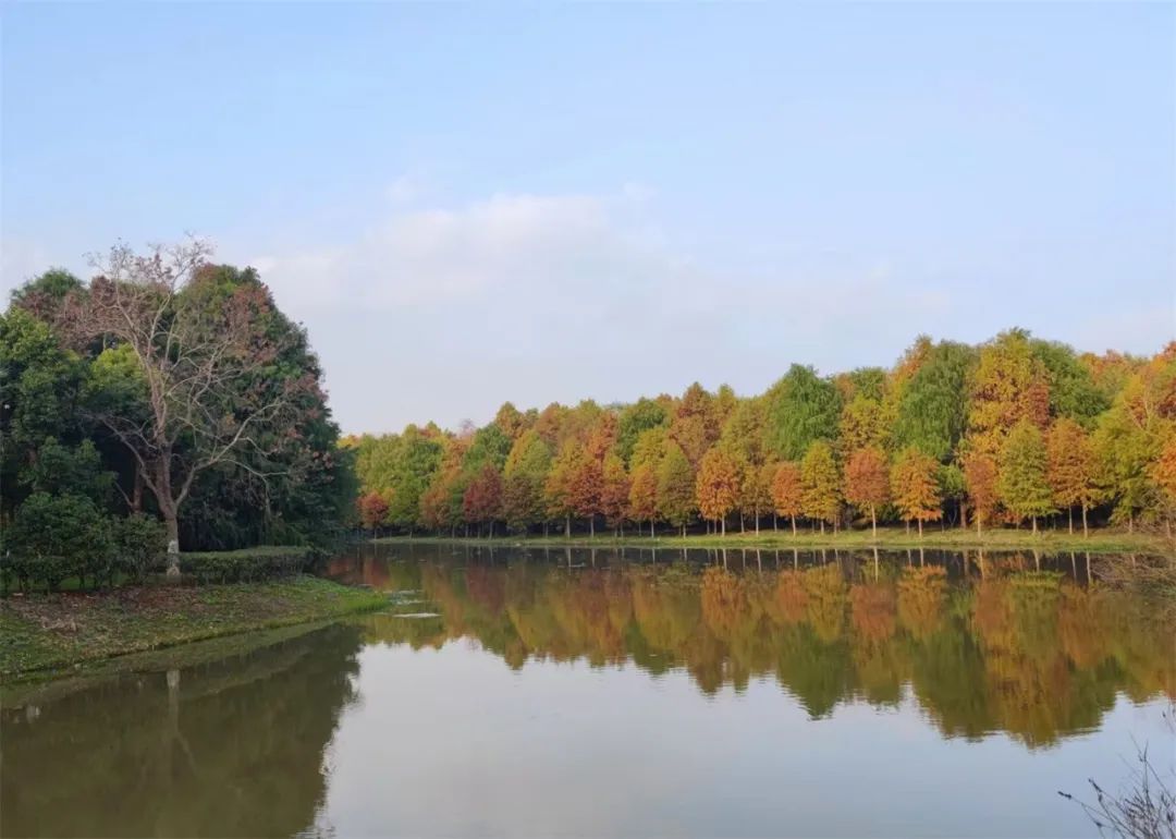 罗泾镇塘湾村公益林位于塘湾村内,初冬一至,其中的七叶树、栾树、枫香等纷纷换上新衣,用金黄与火红中绘出一幅美丽画卷。
