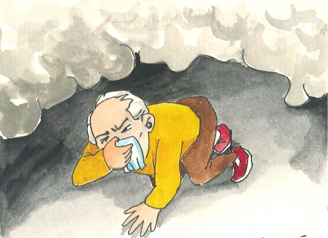 逃生时要用湿毛巾捂住口鼻做好防护,低姿前行,避免烟气吸入。有条件的可以在家中显眼处放置一次性防烟面罩。