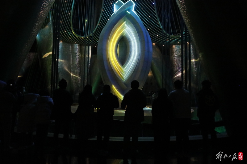 上海中心建造时创造性地打通了125-126的空间,安装着大楼的“定海神针”——中国自主研发的世界首台电涡流摆式阻尼器,重达1000吨,为世界之最。观赏完日出的人们,会来这里观赏新年首场光影秀,在上海离天空最近的地方,感受严谨的技术运算和浪漫的艺术创想在高空相遇,唤醒自己的知觉、触觉、视觉。