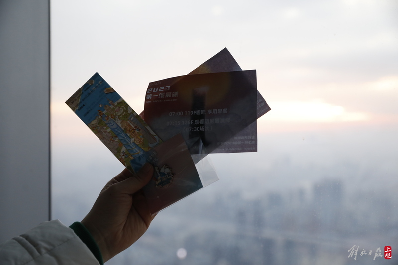 2023年1月1日,数百名上海市民来到位于浦东陆家嘴中国第一高楼上海中心顶部“上海之巅”观光厅守候日出,迎接新年第一缕曙光,许下新年美好祈愿。