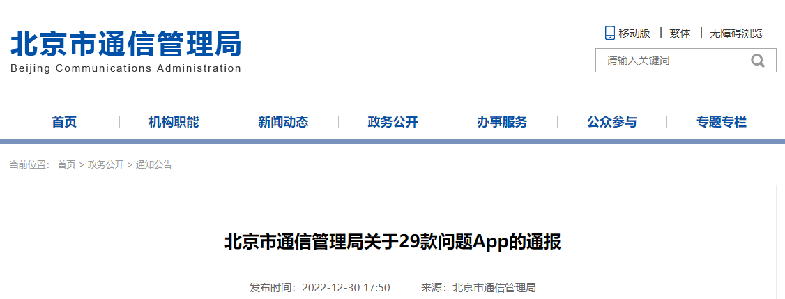 北京市通信管理局关于29款问题App的通报