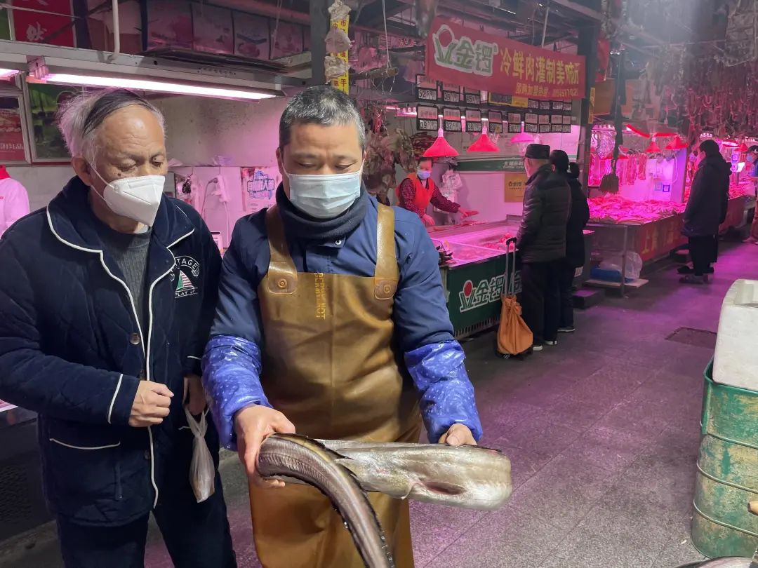 “我以前住在附近,每天都过来买菜,过年的时候更是非常热闹,旧改动迁后搬到宝山去了。但每年春节前夕都会回到这里,还有很多朋友从四面八方来到这里,只为这一口纯正的年味。这家的鳗鲞很香,洗干净清蒸即可上桌,肉质紧实,和外面买的真空包装的完全不一样。这个买回家之后,就是过年的一道硬菜,即使吃不完,放冰箱冷冻保存就行了。”市民张阿姨如是说。