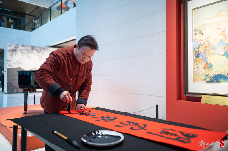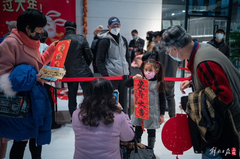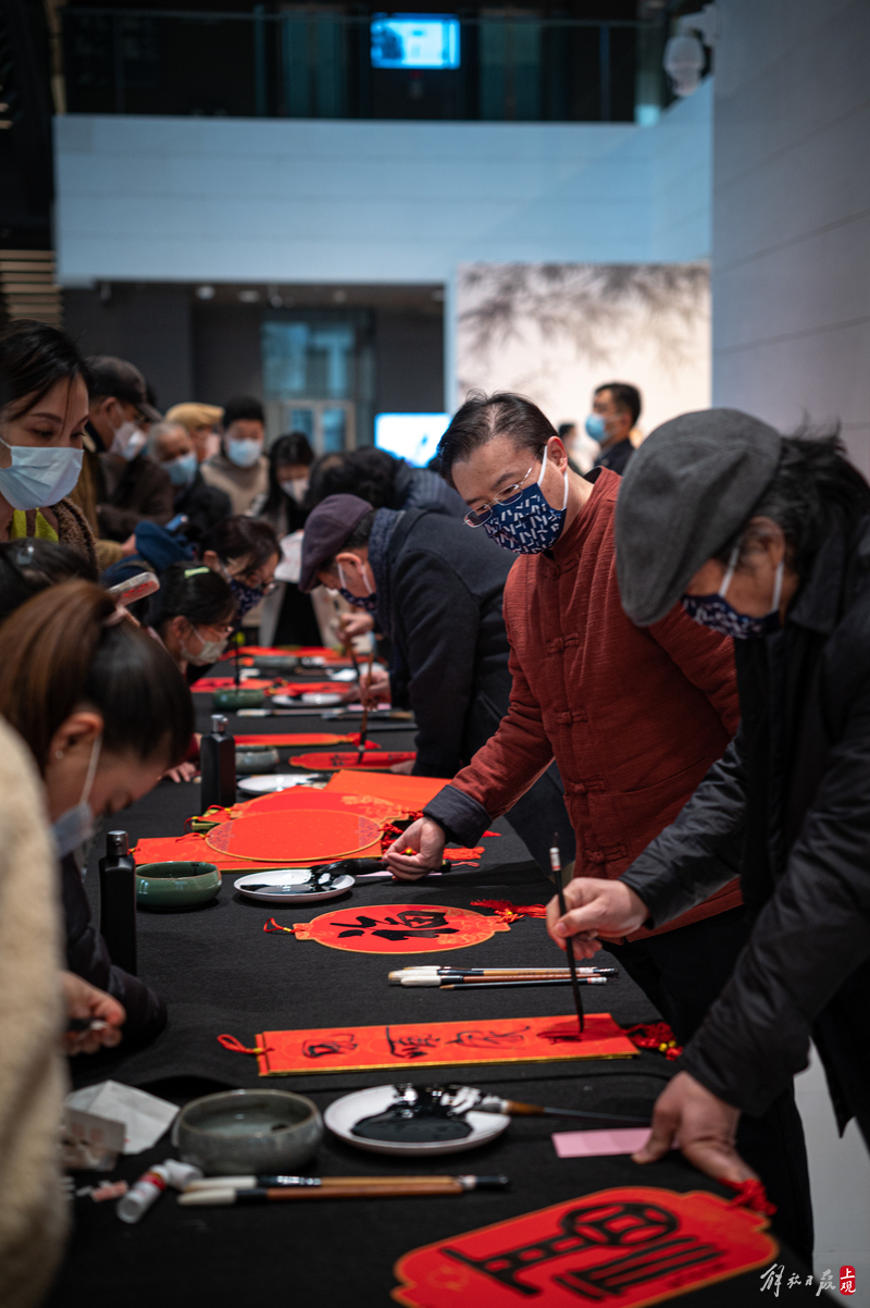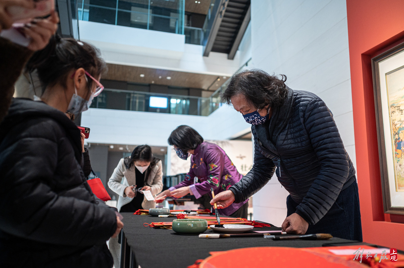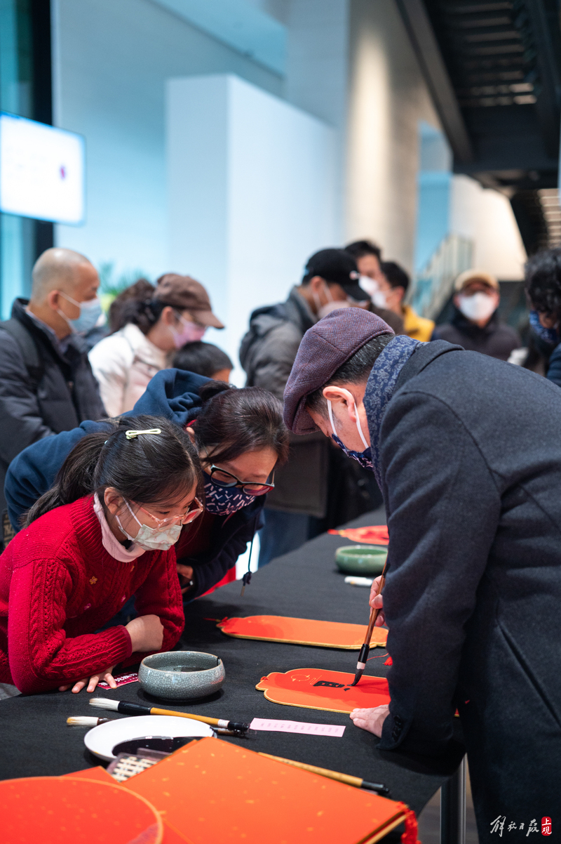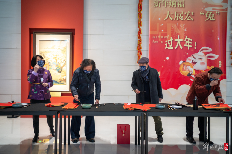 1月14日,上海国画院在程十发美术馆举办“小年纳福 大展宏‘兔’”,书法家现场送福字活动。