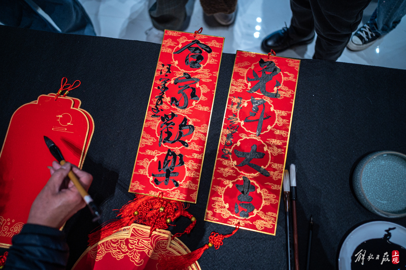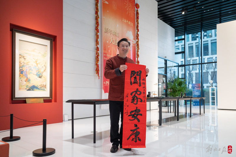 上海国画院副院长,著名书法家江鹏为《解放日报》读者挥毫写下“阖家安康”的新年祝福。