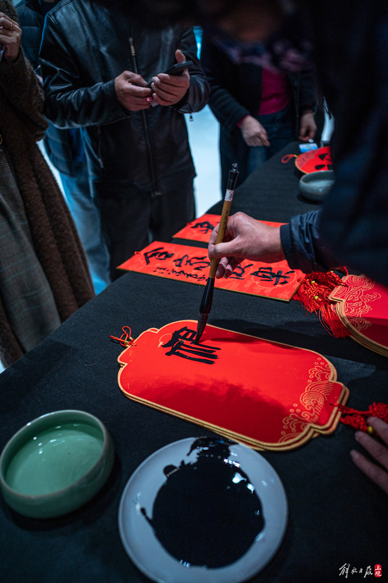 喜庆的书法小品对于艺术家们来说驾轻就熟。但对于书法爱好者来说,一笔一捺,如何拿捏处理,这是难得的现场观摩学习的机会。大家纷纷拿出手机拍摄书法家挥毫的过程。