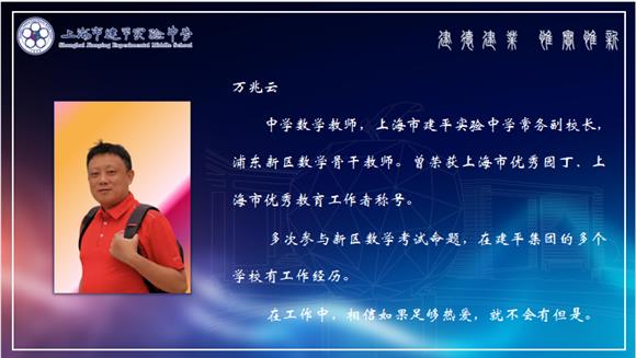 万兆云副校长首先回顾了自己的工作履历,他通过分享自己的成长感悟激励青年教师们:梦的价值在于追求,梦的实现要靠奋斗;今天我以建实为荣,明天建实以我为荣。